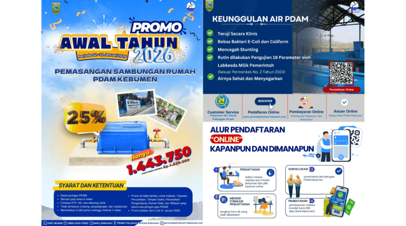Melalui program promo awal tahun ini, PDAM Kebumen mengajak masyarakat untuk segera memanfaatkan kesempatan emas mendapatkan layanan air bersih yang sehat, aman, dan terpercaya.(K24/*).
